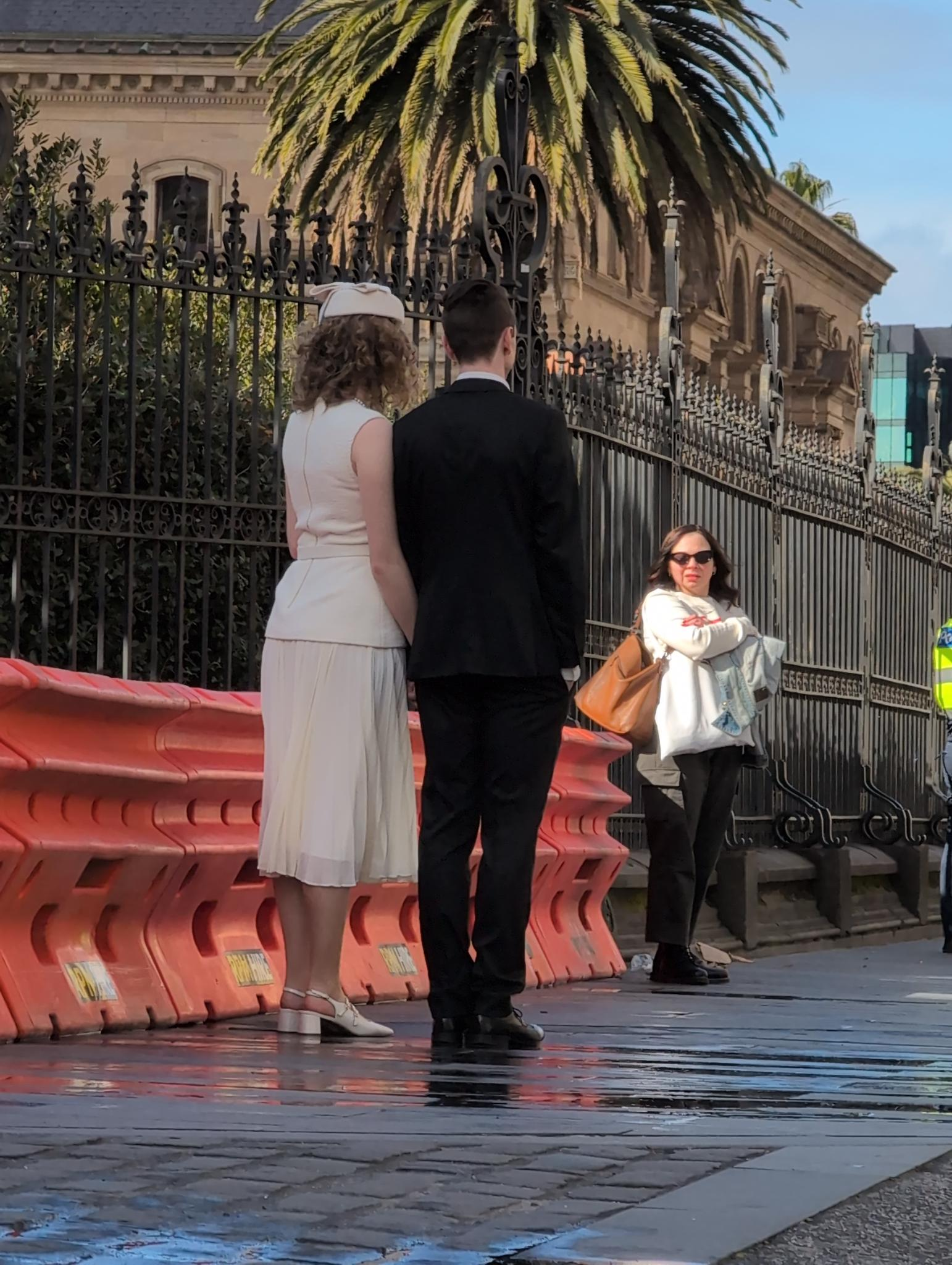 Even well before the protest began, around 10:15 am, a bride and groom struggled to convince the Police to let them anywhere near the parliament building for some wedding photos