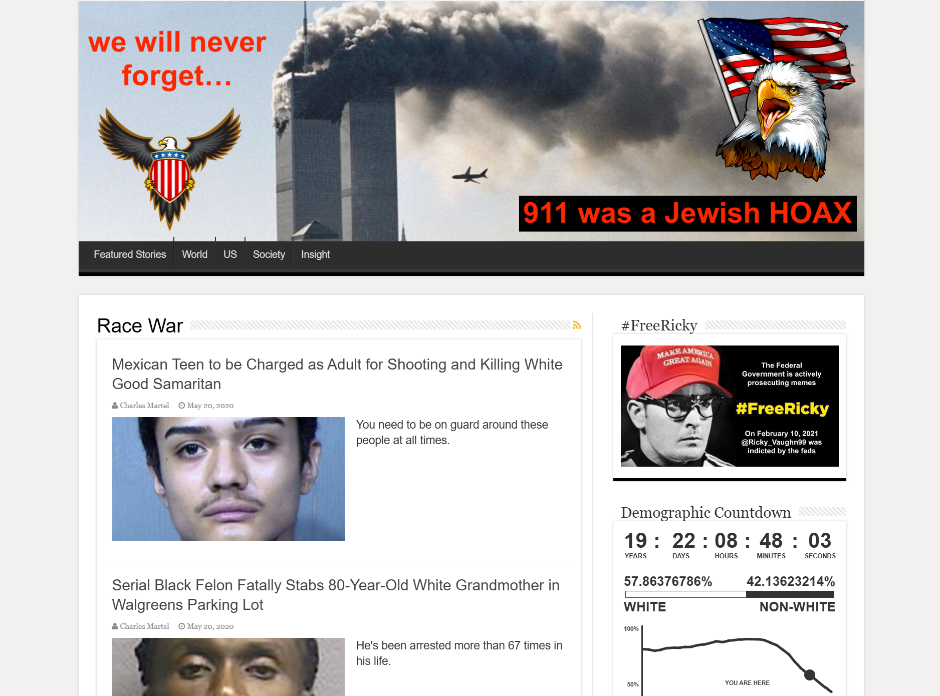 The Daily Stormer, a neo-nazi website, maintains on their site a database of every crime committed by a black/brown person to paint the racist and false picture that black/brown people are inherently criminal. This allows them to perpetuate the notion that there is an ongoing race war between white and black people in order to further the political goals of demonisation and, ultimately, mass deportation of brown people.