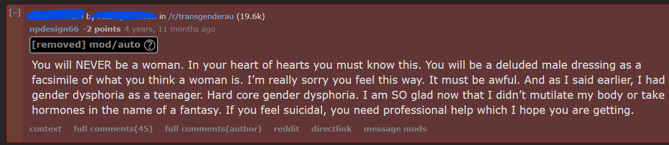 Self-described “Empath” Nicole Phillips runs a small business called Nicole Phillips Design. The business accounts have been used to harass and spread misinformation about transgender people on the /r/transgenderau subreddit under the guise of being concerned, a practice called concern trolling.