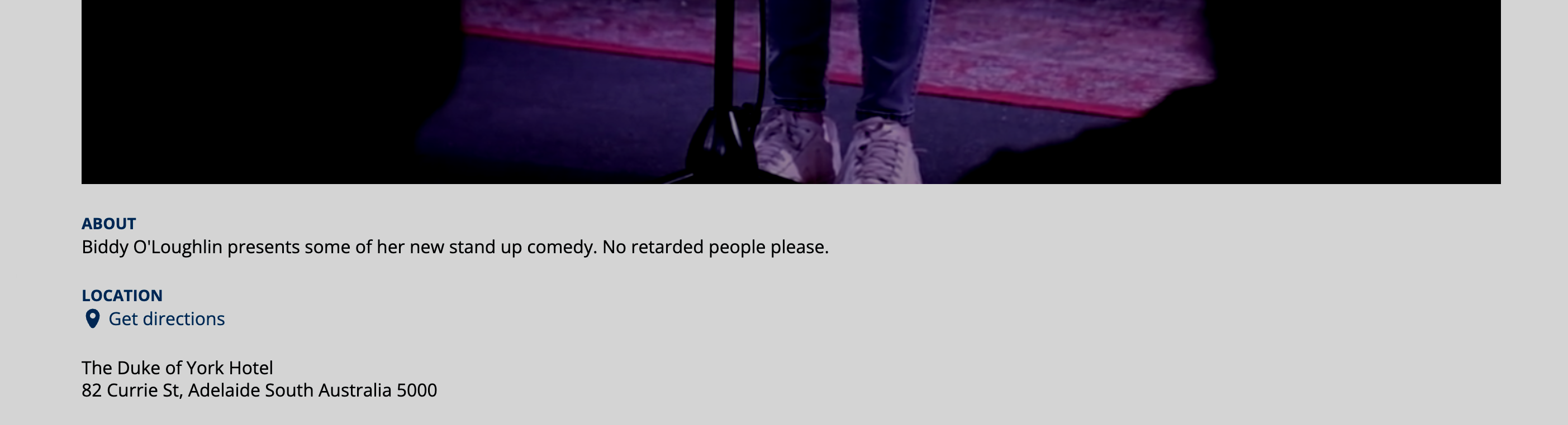 A booking page for an anti-trans comedian’s set at Adelaide’s Duke of York Hotel proudly proclaims “No Retarded People Please”.